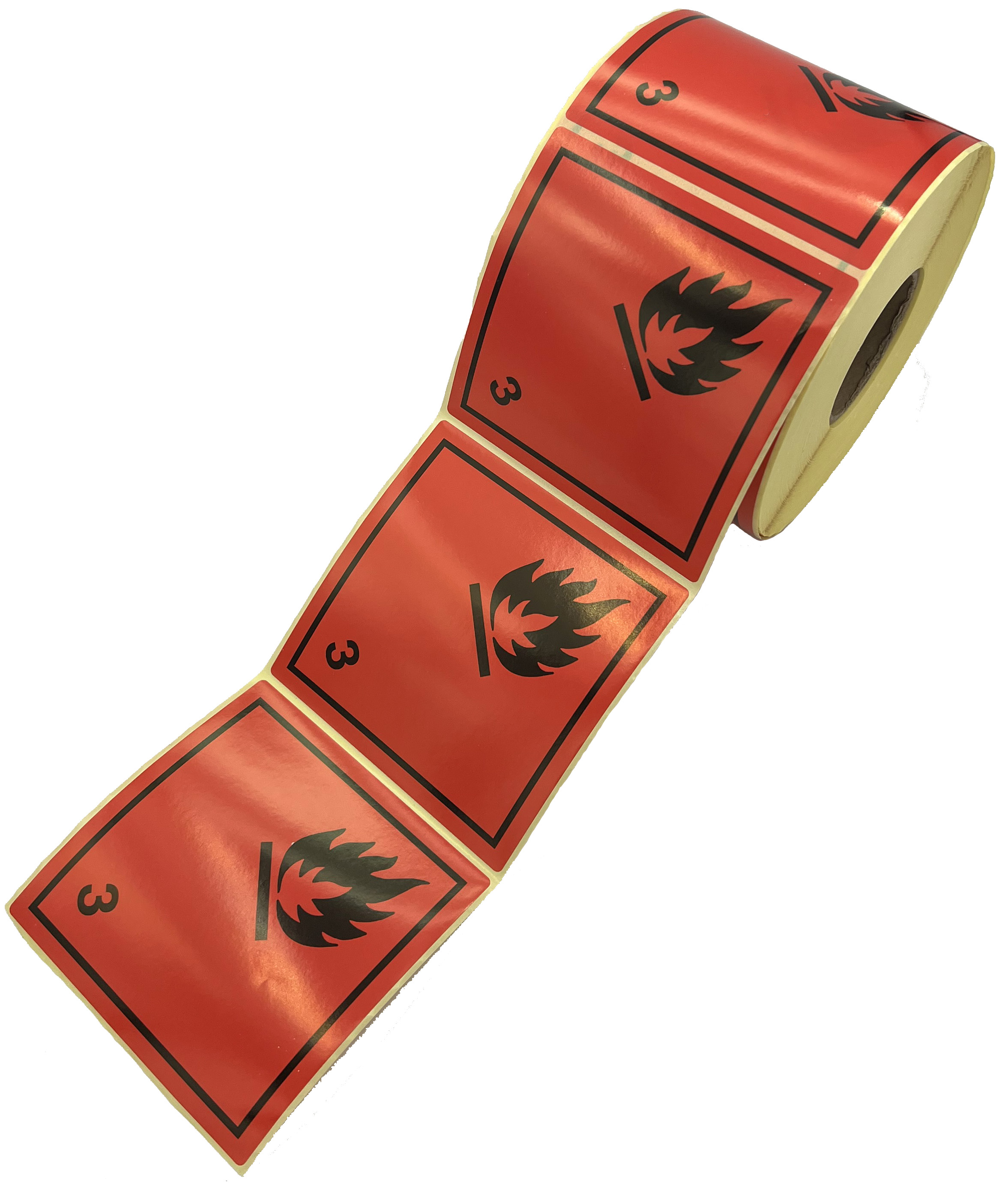 Bei diesen Gefahrgutetiketten der Klasse 3 handelt es sich um einen selbstklebenden Gefahrzettel zur Deklaration entzündbarer, flüssiger Stoffe im Transportgut. Das Gefahrgutetikett Klasse 3 weist auf Explosionsgefahr des Dampf/Luftgemisches, Fliesausbreitung sowie giftige Brandgase hin.