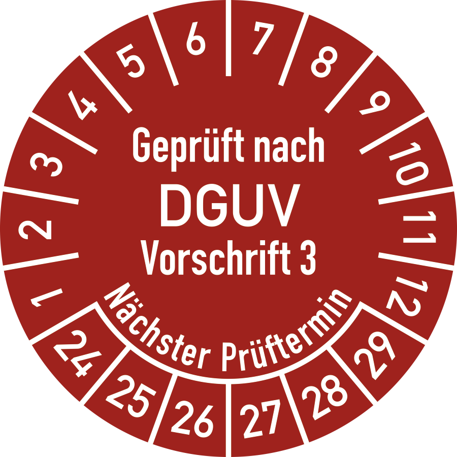 Prüfplakette Geprüft nach DGUV Vorschrift 3 Nächster Prüftermin, 2024 - 2029
