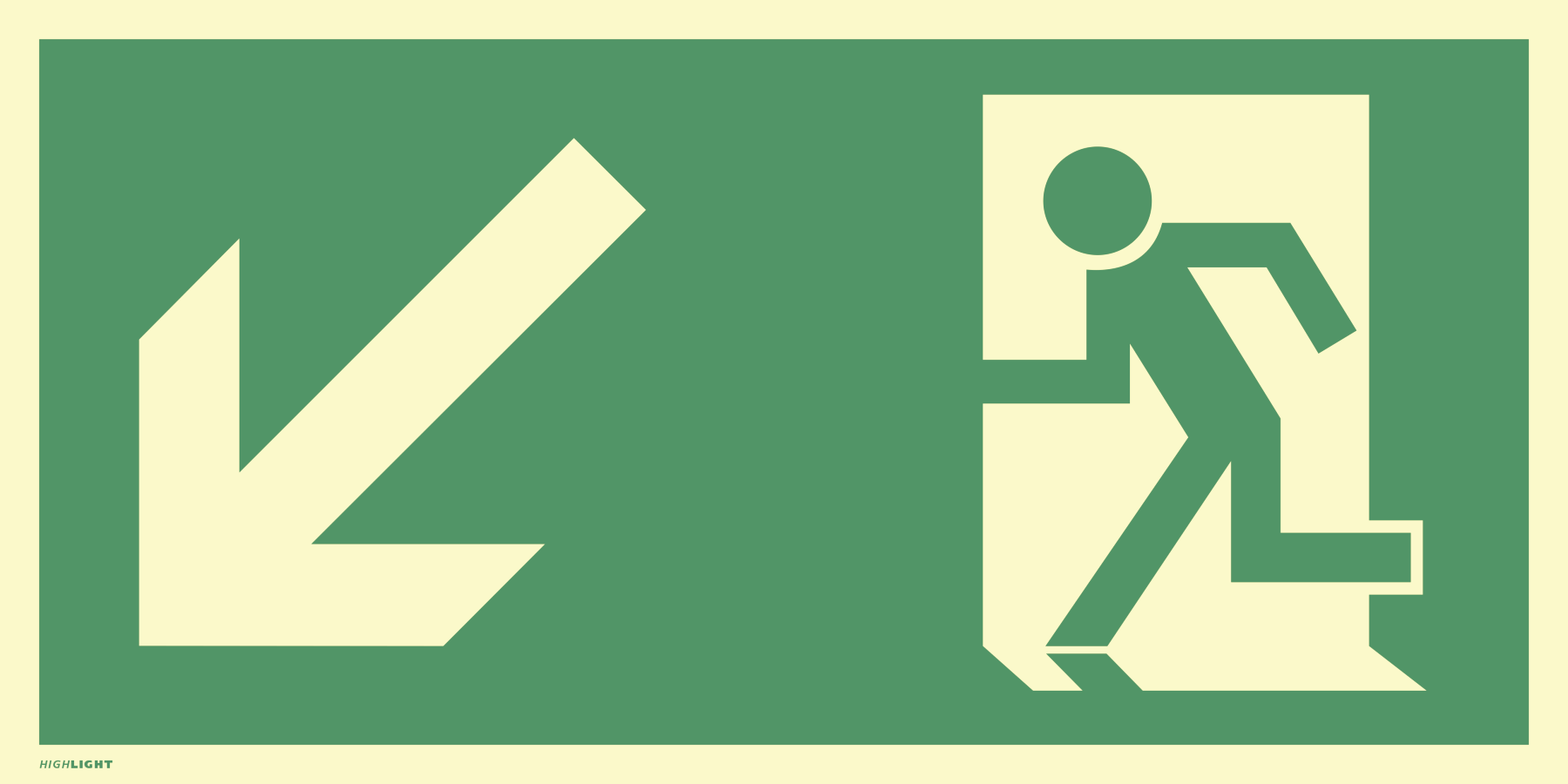Rettungsweg links abwärts, Fluchtwegzeichen, BGV A8 (E02 + E09)