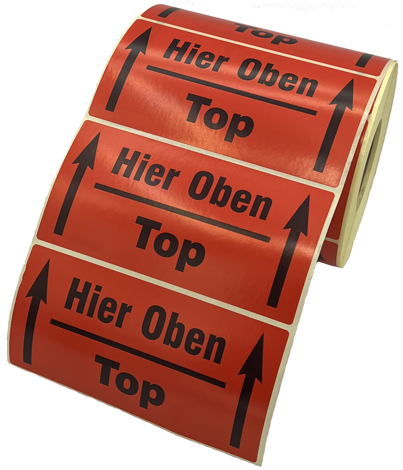 Um festzulegen, an welchem Ende der Karton geöffnet werden soll, kann dieses Transportetikett eingesetzt werden. Somit kann vermieden werden, dass der Inhalt des Pakets nicht richtig entnommen wird und zu bruch geht. Als Erkennungsmerkmal dient der Aufdruck "Hier Open- Top" und die Pfeile, die nach oben zeigen.Dieser Aufkleber kann mit anderen Aufklebern aus unserem Shop frei kombiniert werden.