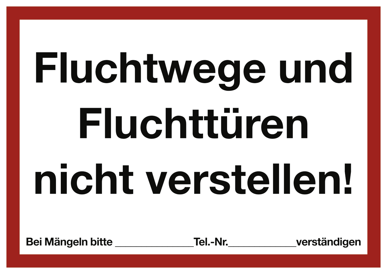 Produktinformationen "Fluchtwege und Fluchttüren nicht verstellen! Bei Mängeln..., Textschild"