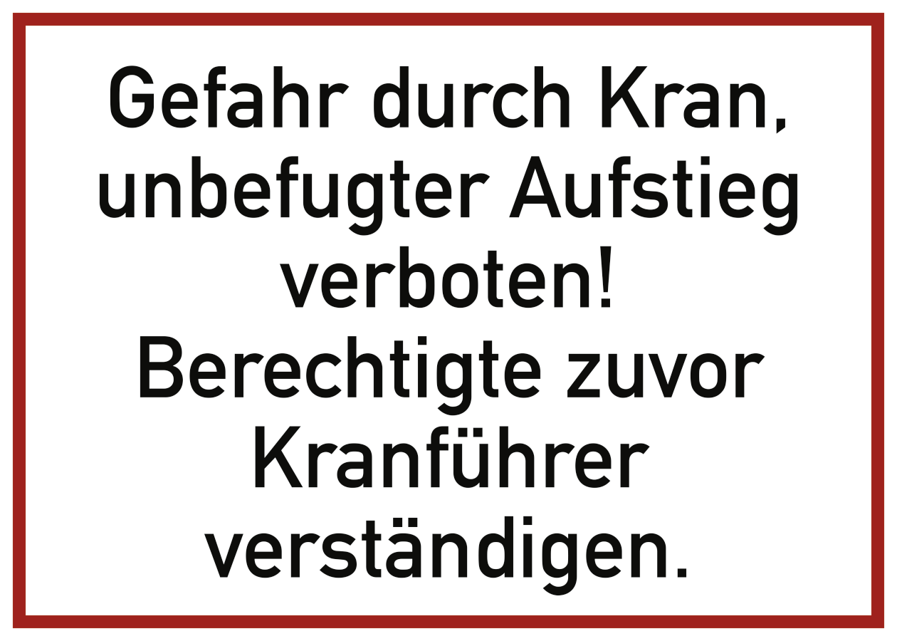 Gefahr durch Kran, unbefugter Aufstieg verboten!